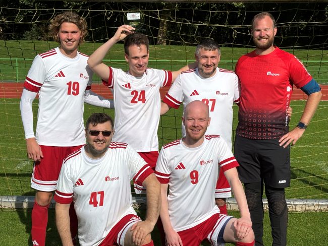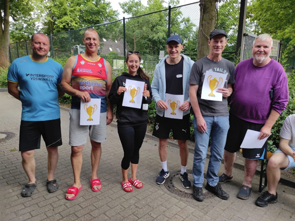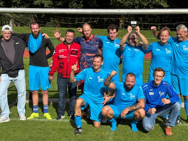 Die Fußballer hatten bei besserem Wetter als angekündigt mit knapp 60 Spielerinnen und Spielern aufgeteilt auf 8 Mannschaften auf dem Kleinfeld um den ersten Platz gekämpft. Am Ende hatte sich das Team UKM Münster durchgesetzt.