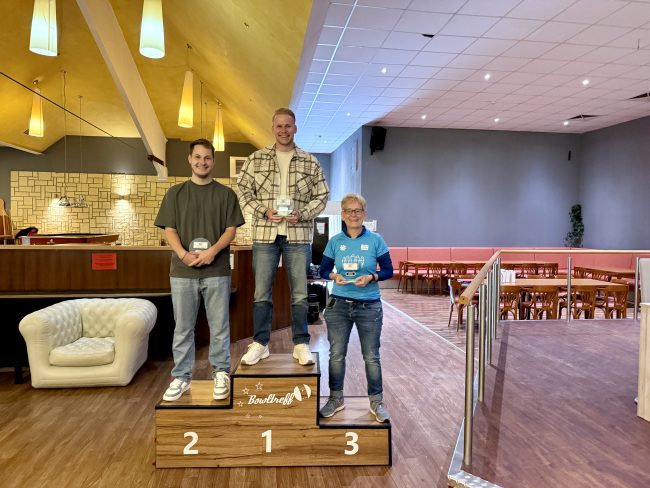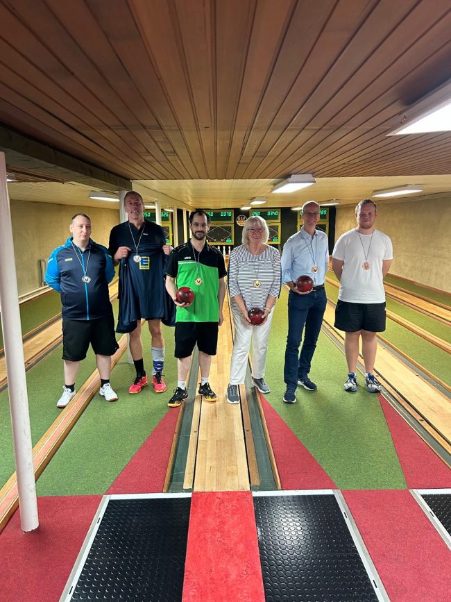 Im Kegeln, eine im BSV Münster leider aussterbende Sportart, wurde nochmal alles gegeben. Mit 16 Teilnehmenden wurde in Paarungen um den Titel gespielt und die Paarung Florian Regano und Thomas Korves haben denkbar knapp mit 8 Pins Vorsprung, den ersten Platz gemacht.