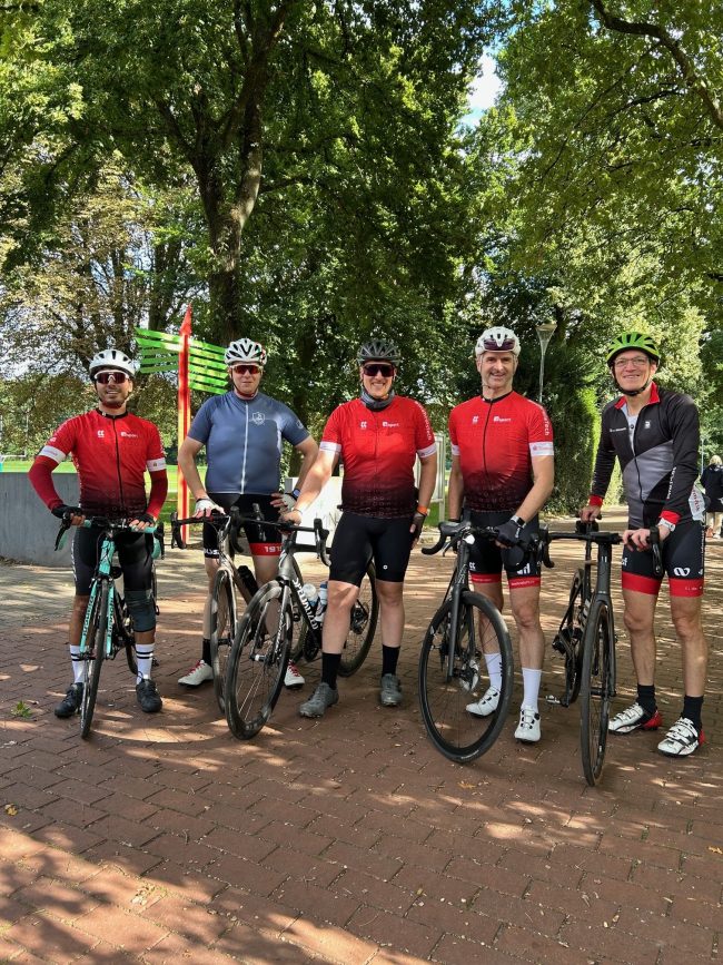 Bei der Rennradtour ging es auch in Richtung Westen, aber etwas sportlicher. Mit einer Gesamtlänge von 68,6 km wurden knapp 290 Höhenmeter überwunden. Dabei hatten unsere 5 Teilnehmer auch ihren Spaß.
